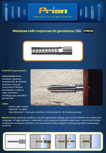 Kołki rozporowe do gazobetonu TGS - 8 x 38 PRIEN